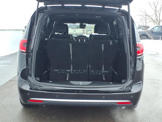 10.1 Touchscreen Display, 17 x 7.0 Aluminum Wheels, 3.25 Axle Ratio, 3rd row seats: split-bench, 4-Wheel Disc Brakes, 4G LTE Wi-Fi Hot Spot, 6 Speakers, ABS brakes, Air Conditioning, Alloy wheels, AM/FM radio: SiriusXM, Apple CarPlay, Apple CarPlay/Android Auto, Auto-dimming Rear-View mirror, Automatic temperature control, Black Seats, Brake assist, Bumpers: body-color, Caprice Leatherette Bucket Seats, Compass, Delay-off headlights, Disassociated Touchscreen Display, Driver door bin, Driver vanity mirror, Driver's Seat Mounted Armrest, Dual front impact airbags, Dual front side impact airbags, Electronic Stability Control, Emergency communication system: Chrysler Connect, For Details, Visit DriveUconnect.com, Four wheel independent suspension, Front anti-roll bar, Front Bucket Seats, Front dual zone A/C, Front Fascia Air Deflectors, Front fog lights, Front reading lights, Fully automatic headlights, Garage door transmitter, Google Android Auto, GPS Antenna Input, Heated door mirrors, Heated front seats, Heated steering wheel, Illuminated entry, Integrated Active Noise Cancellation, Integrated Center Stack Radio, Knee airbag, Low tire pressure warning, Manufacturer's Statement of Origin, Memory seat, Occupant sensing airbag, Outside temperature display, Overhead airbag, Overhead console, Panic alarm, ParkView Rear Back-Up Camera, Passenger door bin, Passenger seat mounted armrest, Passenger vanity mirror, Power door mirrors, Power driver seat, Power Liftgate, Power steering, Power windows, Quick Order Package 27L, Radio data system, Radio: Uconnect 5 with 10.1 Display, Rain sensing wipers, Rear air conditioning, Rear reading lights, Rear window defroster, Rear window wiper, Reclining 3rd row seat, Remote keyless entry, Security system, SiriusXM Guardian - Included Trial (B), Speed control, Split folding rear seat, Spoiler, Steering wheel mounted audio controls, Tachometer, Telescoping steering wheel, Tilt steering wheel, Touring Suspension, Traction control, Trip computer, Turn signal indicator mirrors, USB Host Flip, Variably intermittent wipers, Voltmeter.